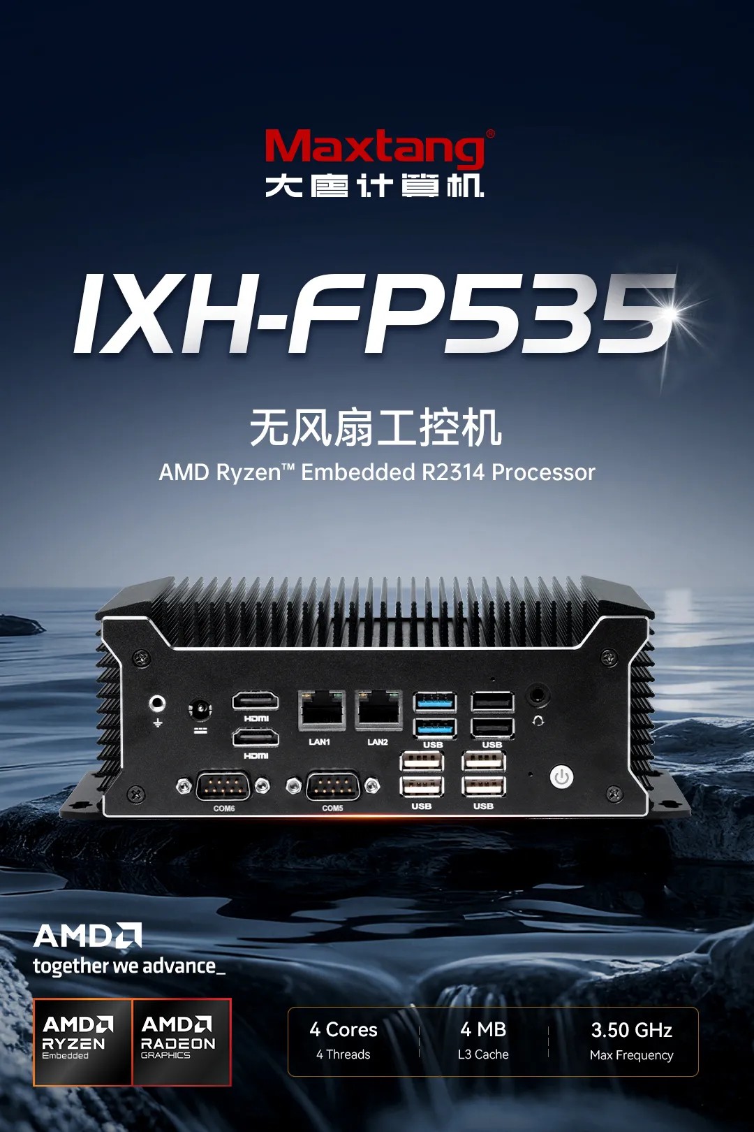 Maxtang推出的IXH-FP535,基于AMD Ryzen™ Embedded R2314处理器,以强悍的性能与灵活的扩展能力,助力您在严苛环境中依然游刃有余。