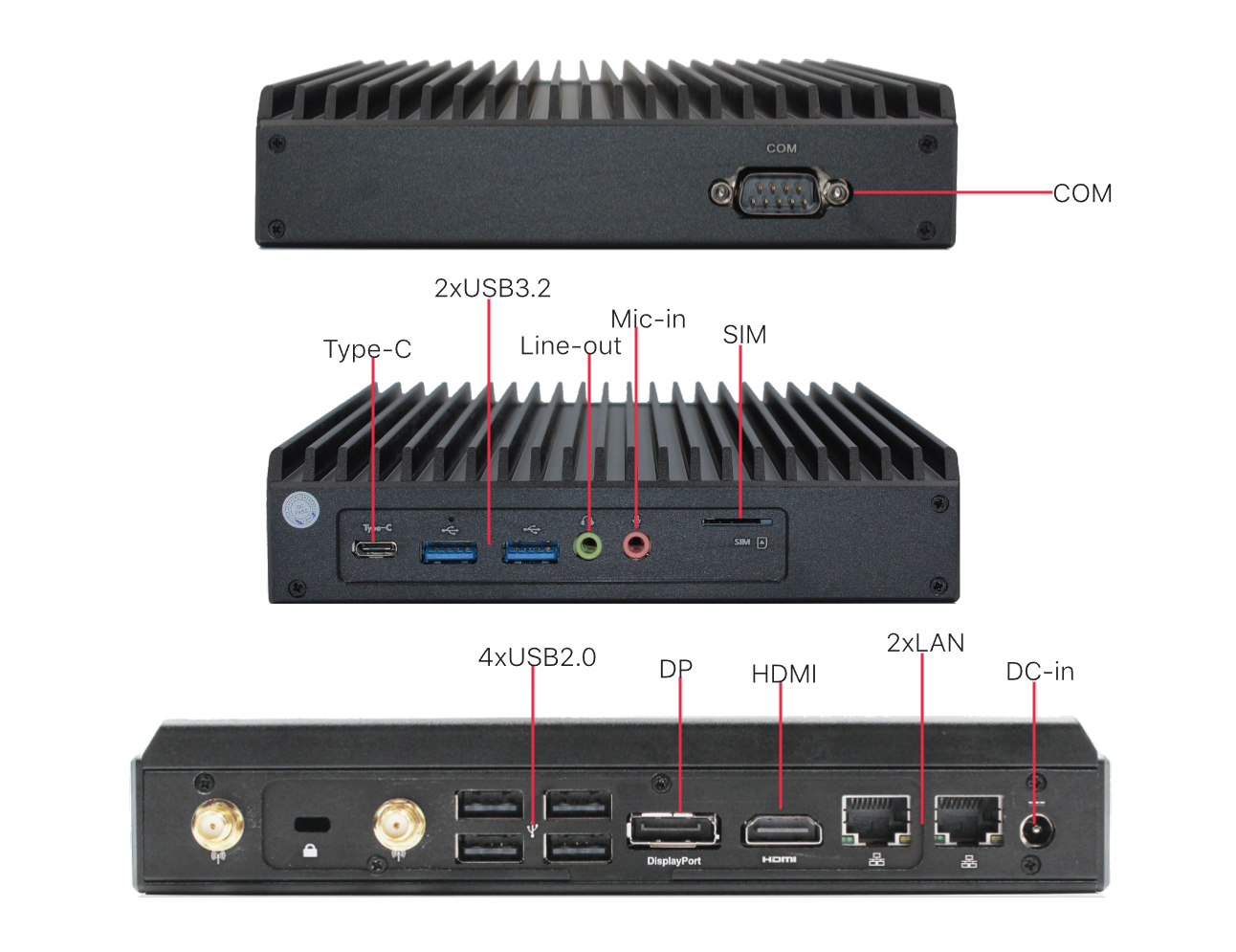 I/O Ports: 2xLAN, 1xCOM, 2xUSB3.2, 4xUSB2.0, SIM