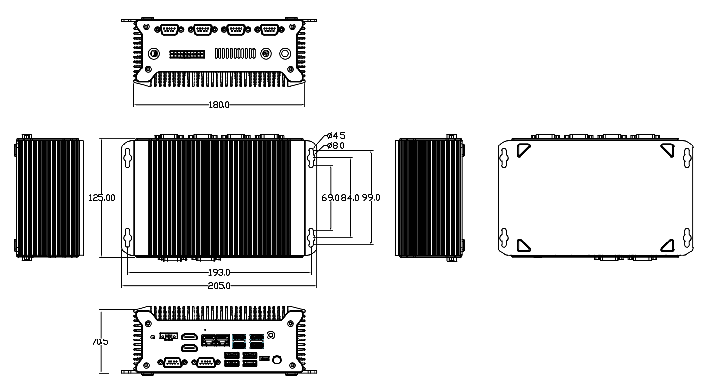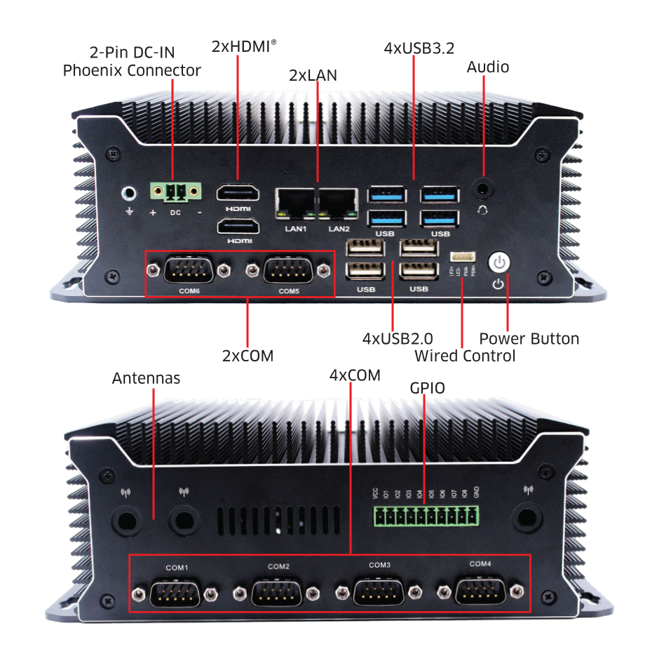 丰富的I/O接口:该MiniPC配备了2个HDMI显示接口、2个千兆以太网控制器、6个串行端口和8个USB端口,满足各种工业应用场景的接口需求,方便与外部设备的连接和通信。
