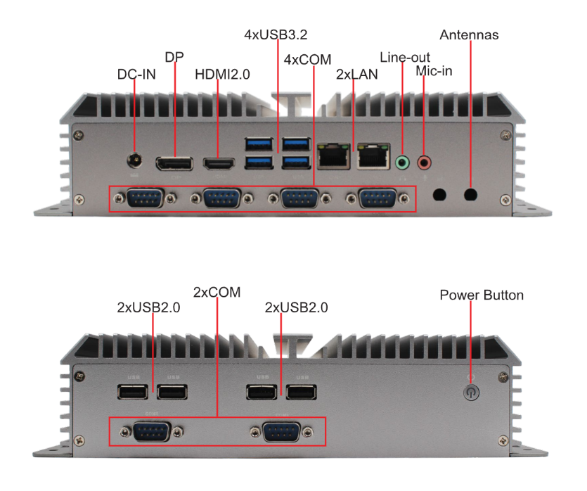 I/O Ports: 4xUSB3.2, 4xUSB2.0. 2xLAN, 6xCOM