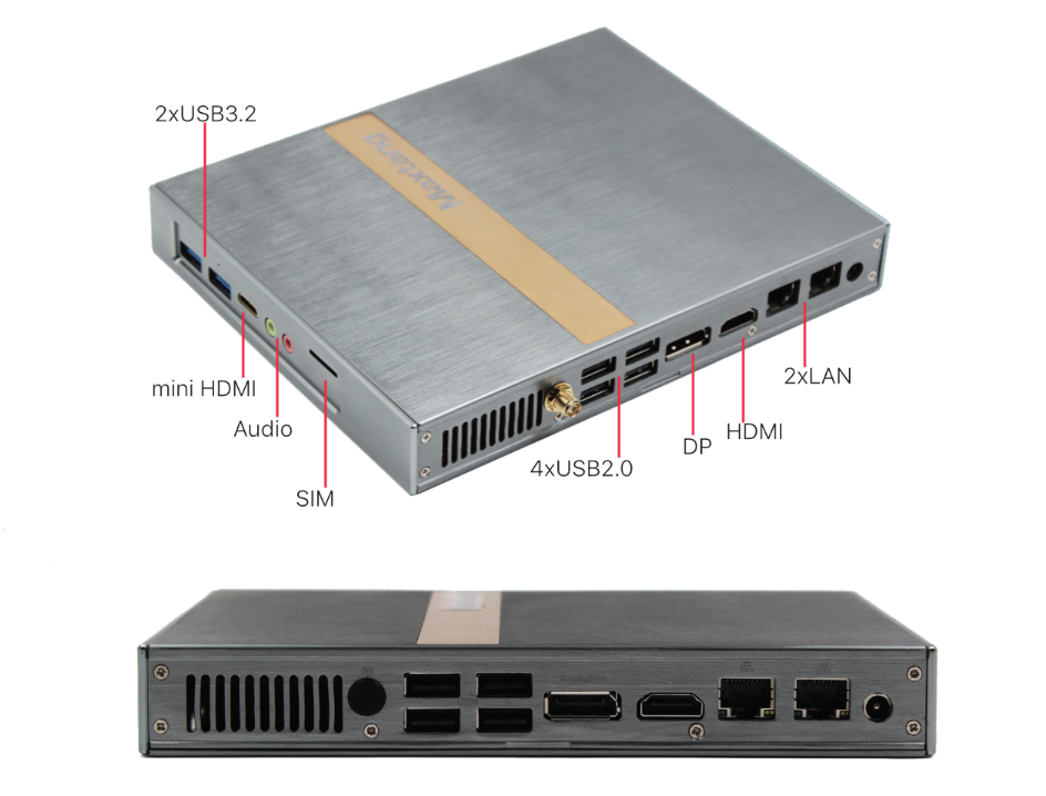 I/O Ports: 2xLAN, 2xUSB3.2, 4xUSB2.0, COM optional, SIM