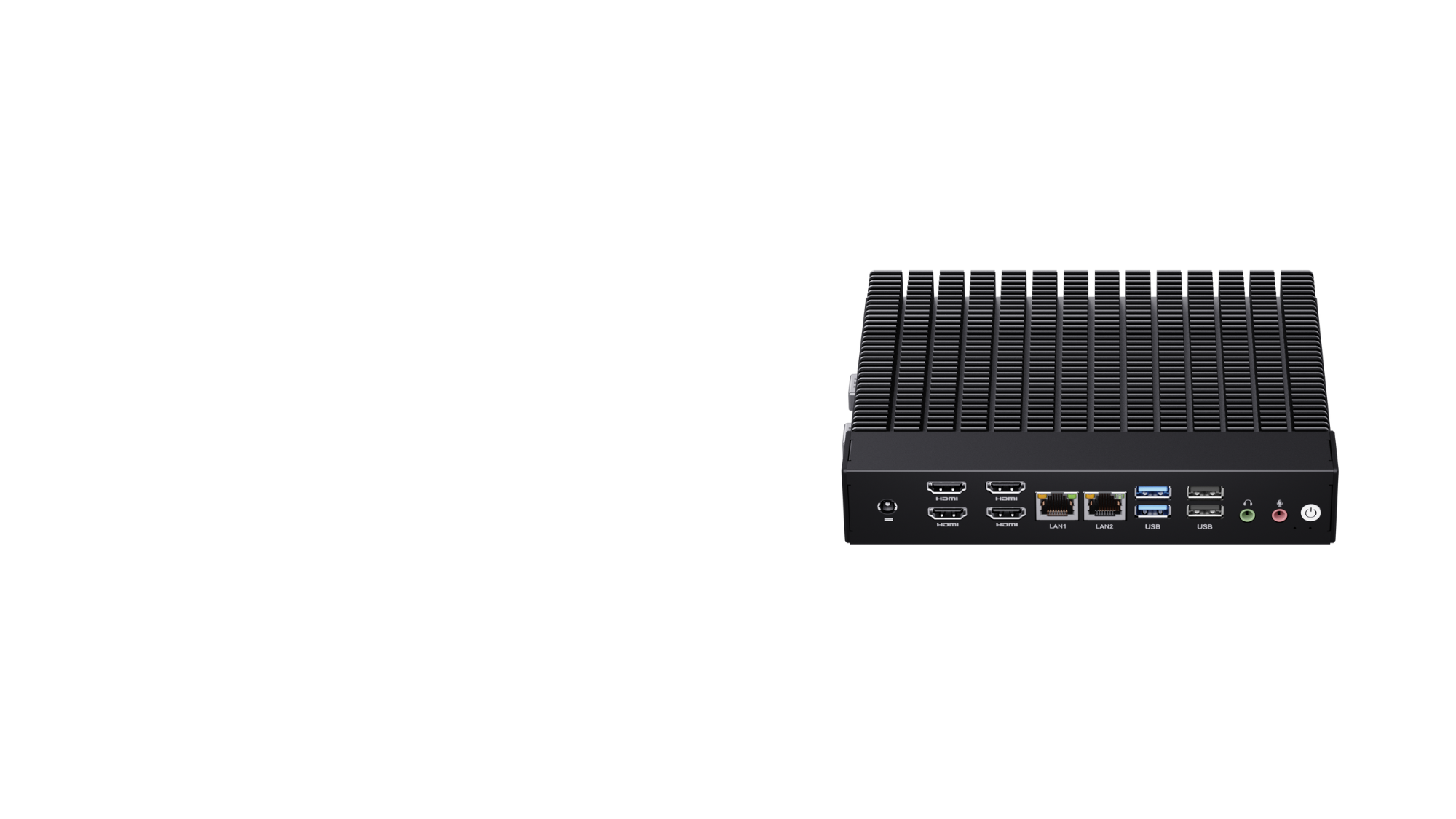 I/O Ports: 2xLAN, 2xCOM, 2xUSB3.2, 4xUSB2.0, 4xHDMI2.0, USB-C