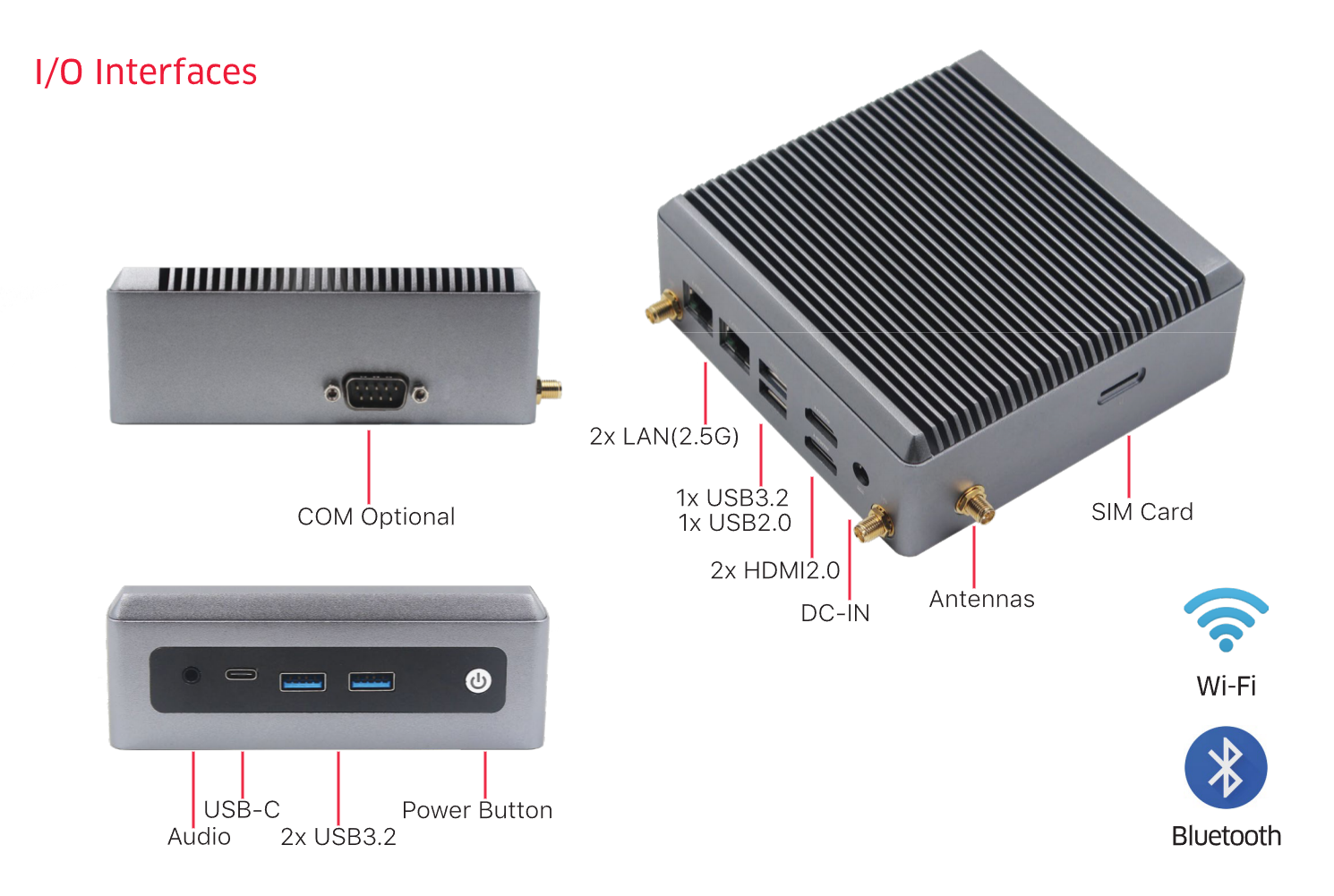I/O Ports: 2xLAN, 3xUSB3.2, 1xUSB2.0, USB-C, SIM, COM optional