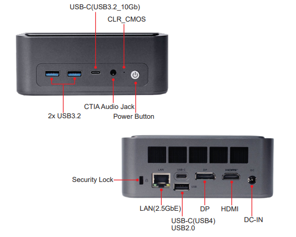 I/O Ports: 2xUSB-C, 2xUSB3.2, 1xUSB2.0, 1xLAN(2.5GbE), Audio