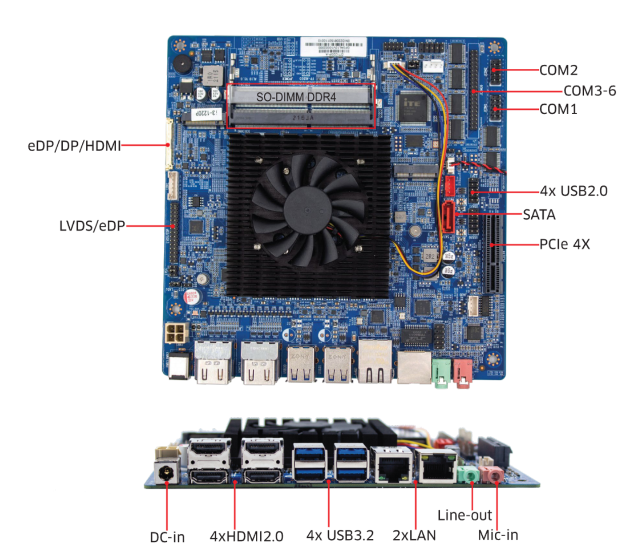 灵活扩展与全面接口:主板提供多种扩展接口,包括M.2、PCIe 4X和GPIO等,同时支持HDMI、USB、LAN等多种接口,满足您在各种场景下的连接需求。